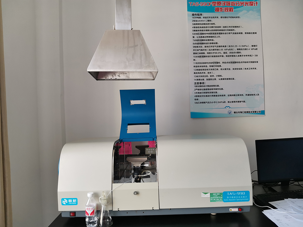 我公司配有气相色谱仪、原子吸收光谱仪、原子荧光光谱仪、紫外可见分光光度计、电子天平、紫外辐照计、粉尘采样器、防爆粉尘采样器、智能个体粉尘采样器、防爆个体粉尘采样器、大气采样器、防爆大气采样器、电子皂膜流量计、工频电场(近区)场强仪、便携式红外线CO分析器、WBGT指数仪、个体防爆大气采样器、振动分析仪、智能热球式风速仪、个人声暴露计、电磁场测定仪、大型打印设备、胶装设备、便携式打印机、普通照相机、防爆数码相机、激光测距仪、电脑、平板、超声波测厚仪、数字温湿度表等设备,可以满足日常检测及评价需求。