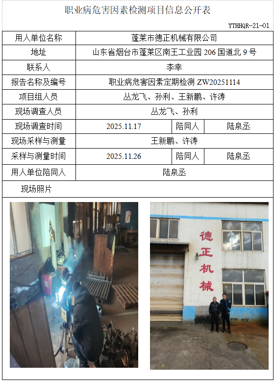 ZW20251114蓬莱市德正机械有限公司职业病危害因素检测项目信息公开表(20251223)