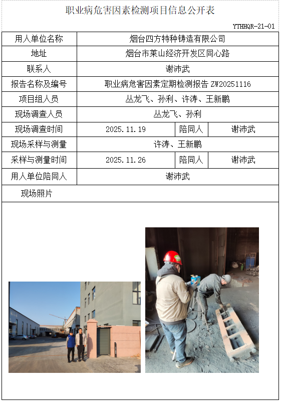 ZW20251116烟台四方特种铸造有限公司职业病危害因素检测项目(20251227)