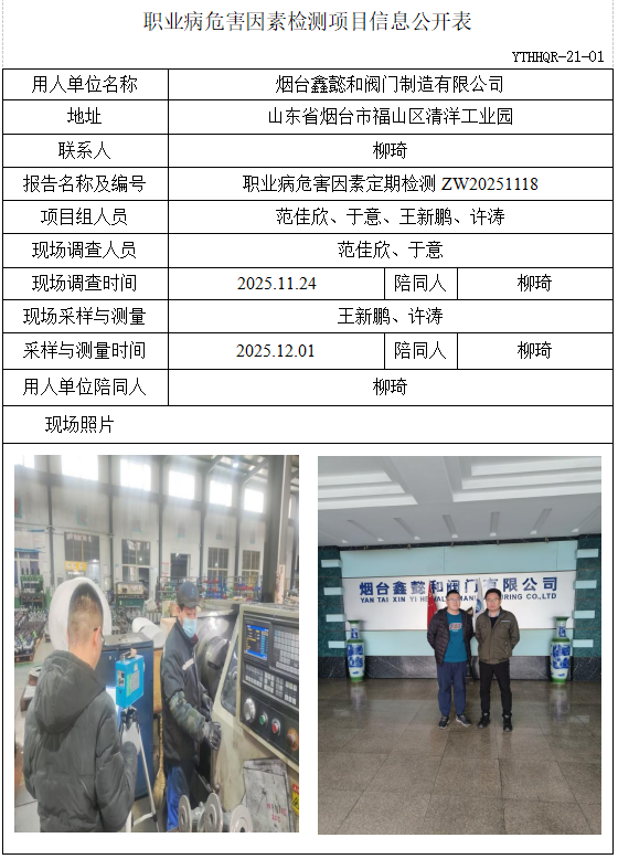 ZW20251118烟台鑫懿和阀门制造有限公司职业病危害因素检测项目信息公开表(20251222)