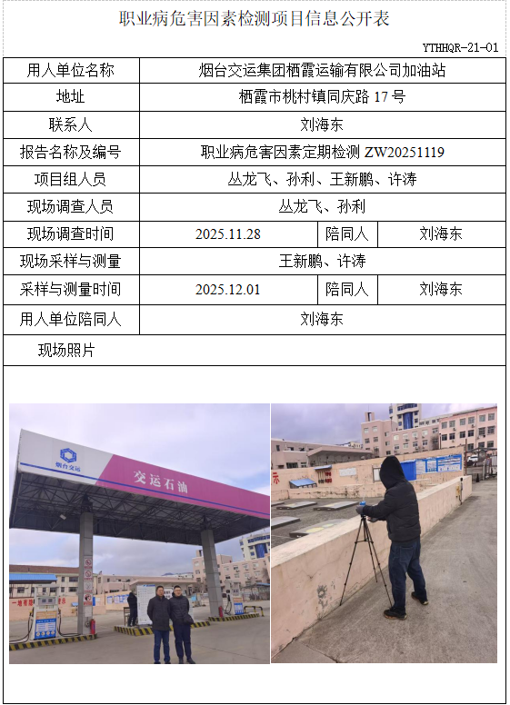 ZW20251119烟台交运集团栖霞运输有限公司加油站职业病危害因素检测项目信息公开表(20251215)