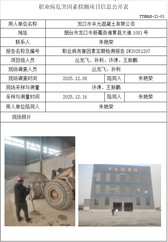 ZW20251207龙口市中允混凝土有限公司职业病危害因素检测项目(20251223)