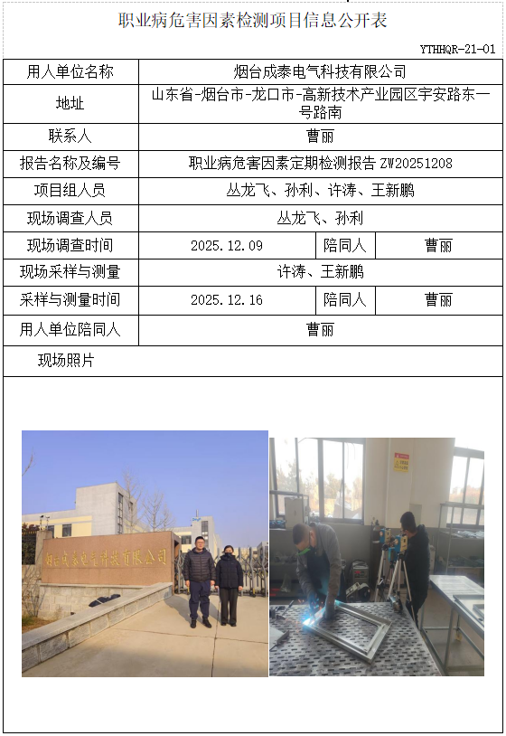 ZW20251208烟台成泰电气科技有限公司职业病危害因素检测项目(20251226)
