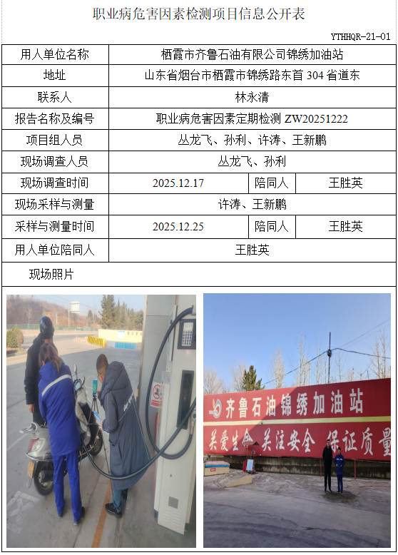 ZW20251222栖霞市齐鲁石油有限公司锦绣加油站-职业病危害因素检测项目信息公开表(20251231)