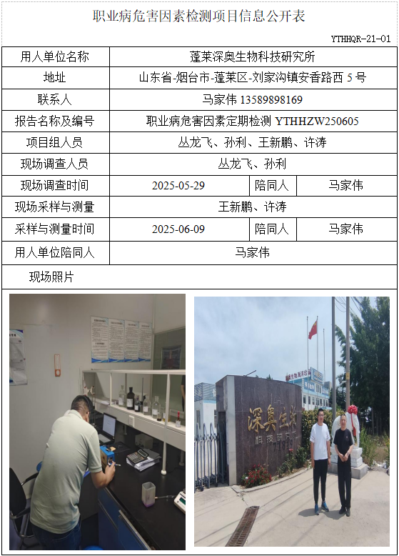 ZW20250605蓬莱深奥生物科技研究所-职业病危害因素检测项目信息公开表(2025-07-01)
