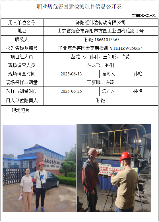 ZW20250624海阳经纬达传动有限公司 职业病危害因素检测项目信息公开表(20250728)