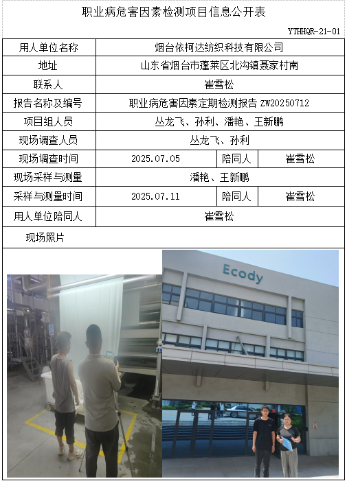 ZW20250712烟台依柯达纺织科技有限公司职业病危害因素检测项目(20250813)