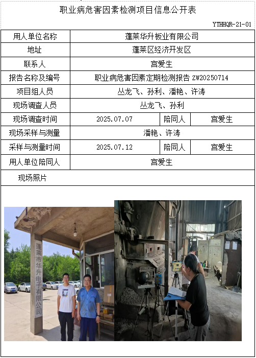 ZW20250714蓬莱华升板业有限公司职业病危害因素检测项目(20250801)