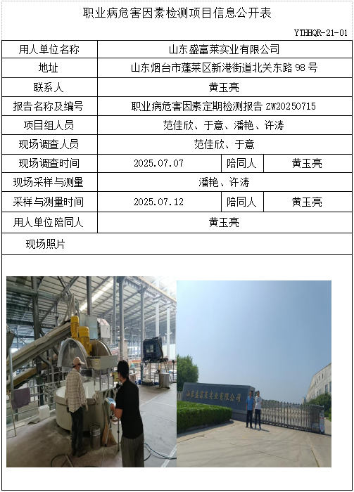 ZW20250715山东盛富莱实业有限公司职业病危害因素检测项目(20250801)