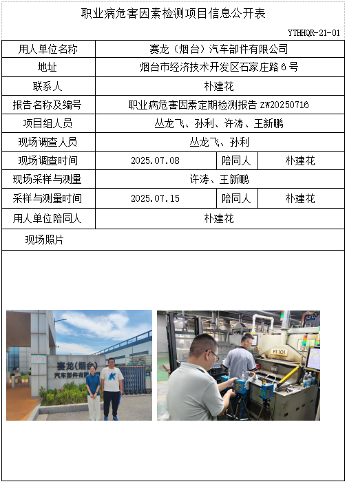 ZW20250716赛龙(烟台)汽车部件有限公司职业病危害因素检测项目(20250801)