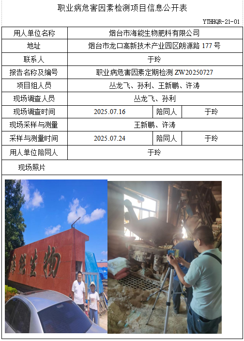 ZW20250727烟台市海能生物肥料有限公司 职业病危害因素检测项目信息公开表(20250802)