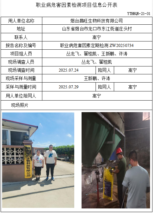 ZW20250734烟台昌旺生物科技有限公司职业病危害因素检测项目信息公开表(20250818)