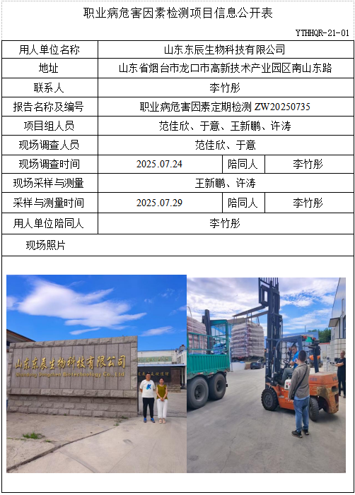 ZW20250735山东东辰生物科技有限公司职业病危害因素检测项目信息公开表(20250802)