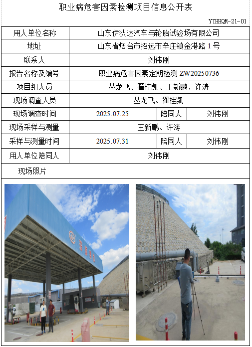 ZW20250736山东伊狄达汽车与轮胎试验场有限公司职业病危害因素检测项目信息公开表(20250815)