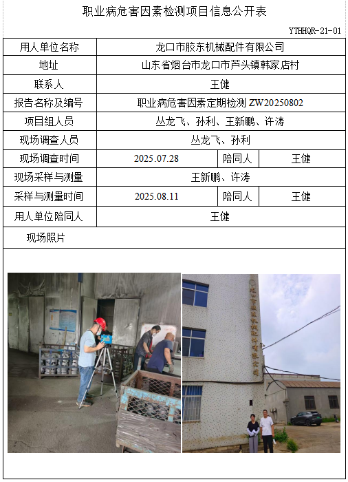 ZW20250802龙口市胶东机械配件有限公司职业病危害因素检测项目信息公开表(20250827)