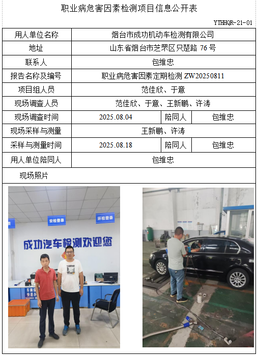 ZW20250811烟台市成功机动车检测有限公司职业病危害因素检测项目信息公开表(20250905)