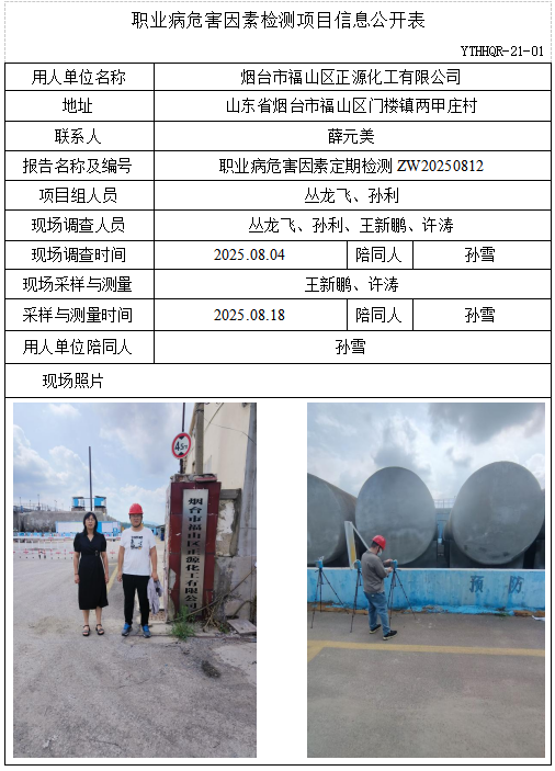 ZW20250812烟台市福山区正源化工有限公司职业病危害因素检测项目信息公开表(20250905)