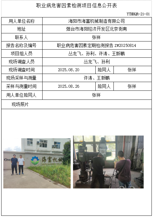 ZW20250814海阳市海富机械制造有限公司职业病危害因素检测项目(20250922)