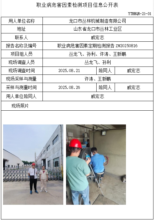 ZW20250816龙口市丛林机械制造有限公司职业病危害因素检测项目(20250922)