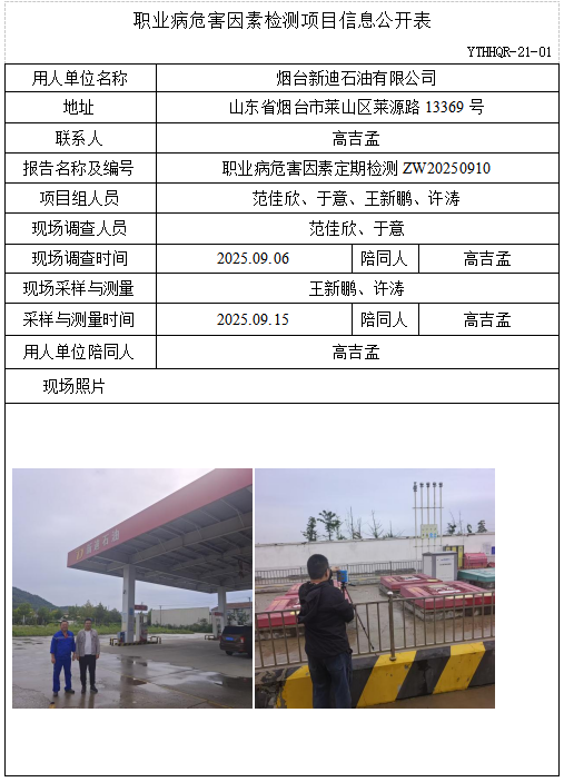 ZW20250910烟台新迪石油有限公司职业病危害因素检测项目信息公开表(20251028)