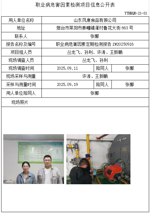 ZW20250916山东凤康食品有限公司职业病危害因素检测项目(20251010)