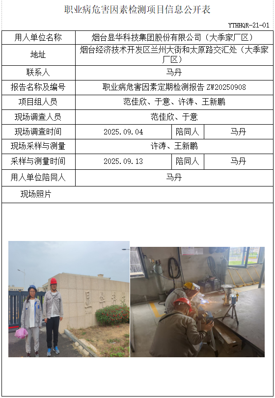 ZW20250908烟台显华科技集团股份有限公司(大季家厂区)职业病危害因素检测项目(20251107)