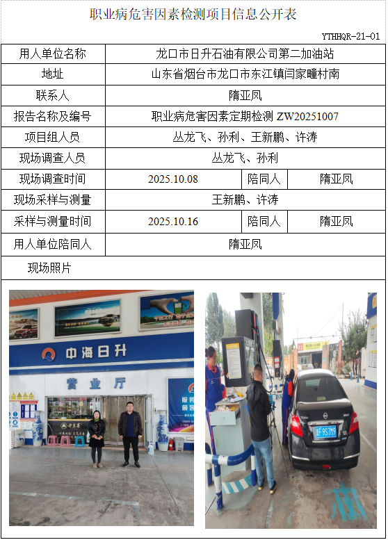 ZW20251007龙口市日升石油有限公司第二加油站-职业病危害因素检测项目信息公开表(20251117)