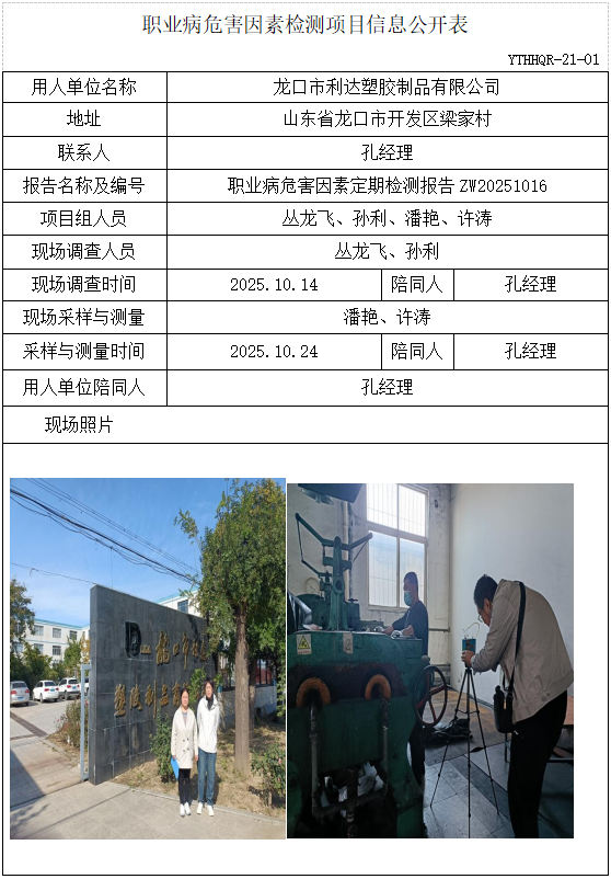 ZW20251016龙口市利达塑胶制品有限公司职业病危害因素检测项目(20251115)