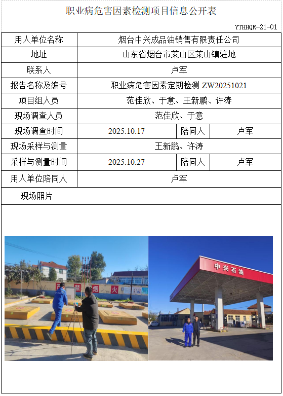 ZW20251021烟台中兴成品油销售有限责任公司职业病危害因素检测项目信息公开表(20251113)