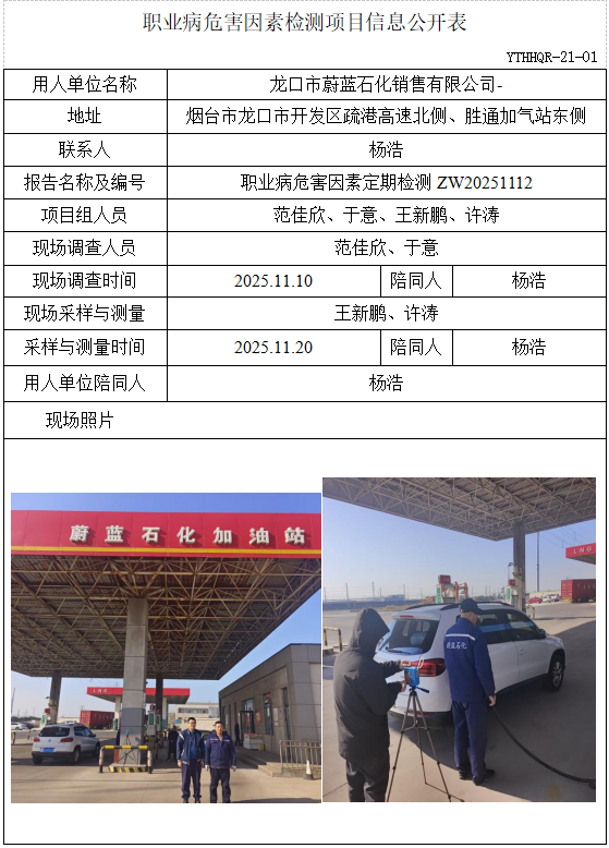 ZW20251112龙口市蔚蓝石化销售有限公司-职业病危害因素检测项目信息公开表(20251210)